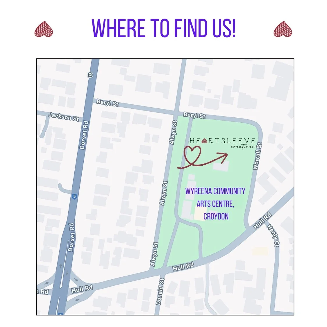 The best parking is in the car park at Wyreena itself. This car park can be accessed from either side of the park - from the Beryl Street entrance, or the Hull Road entrance. There is also parking in the surrounding streets. Please be mindful of our lovely neighbours when walking to and from your car.